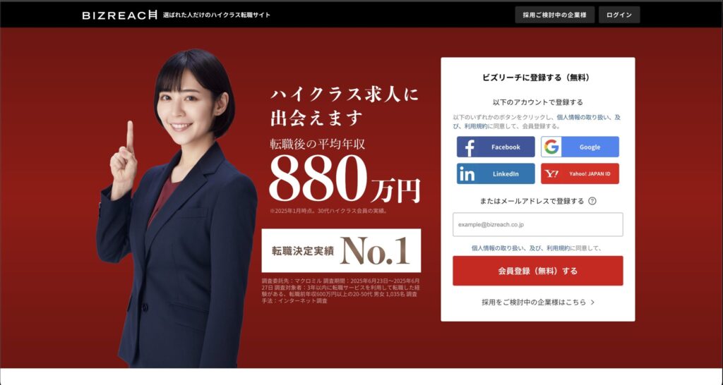 JACリクルートメントに登録するなら、あわせて登録しておきたいのが『ビズリーチ』です。